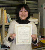 この春に博士課程を修了した戸田喜丈君が、本年度の標記の賞を授与されました(写真参照)。